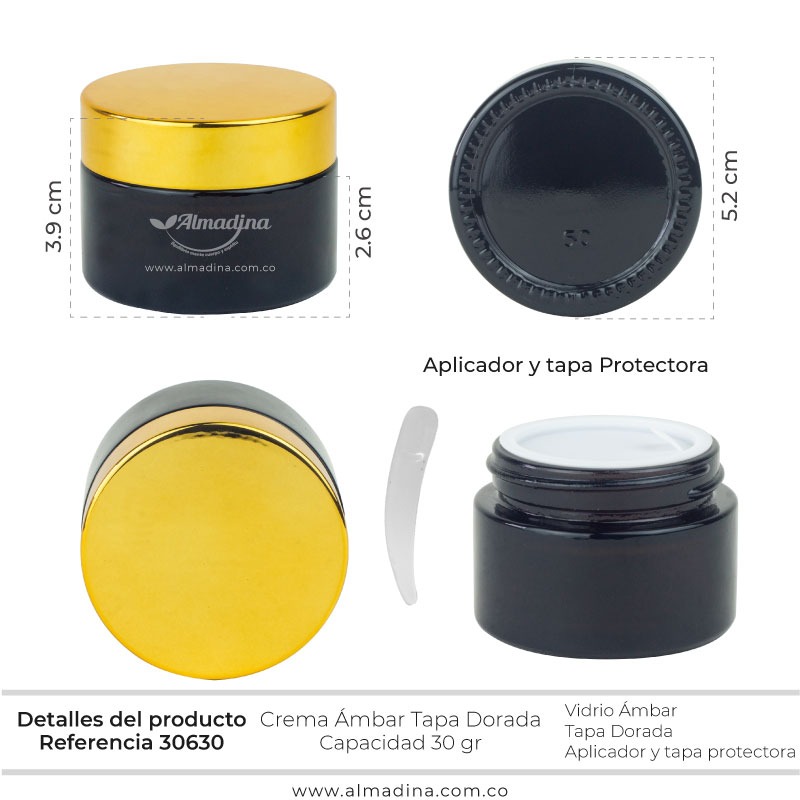 Envase Vidrio Crema 30 Gramos Ámbar tapa Dorada tipo Espejo